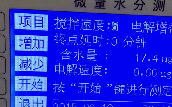 第一步,在將微量水分測試儀組裝好后,加入電解液并稀釋,讓微量水分測試儀自動進行電解平衡。
