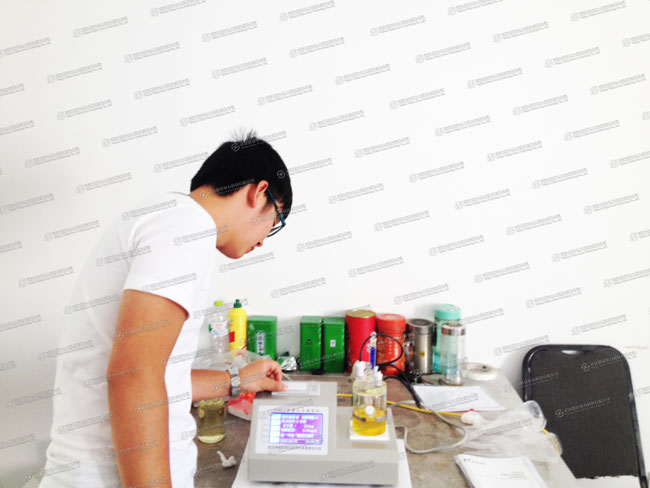 第三步,標定完成以后,就可以直接將我們處理好的油樣打進儀器里面去,微量水分測試儀自動進行電解,很快就可以出來測試結(jié)果。
