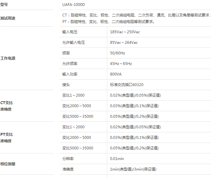 UAFA-1000D CT/PT參數(shù)分析儀技術(shù)參數(shù)