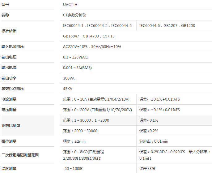 UACT-H CT參數(shù)分析儀技術(shù)參數(shù)