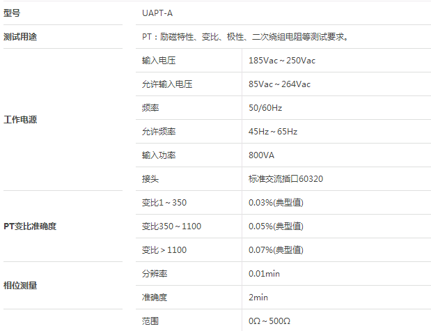 UAPT-A 便攜式電壓互感器分析儀技術(shù)參數(shù)